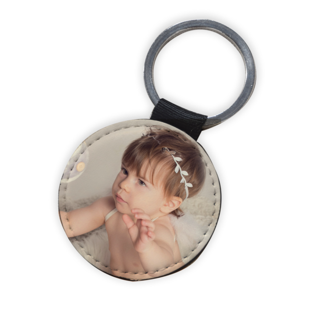 Portachiavi Ecopelle tondo personalizzabile con foto e scritte.